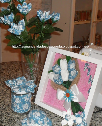 Desde pequeña me encanto las manualidades, no solo a mí sino a toda mi familia nos apasiona, ya que mama nos inculco esta pació desde pequeña. He tomados muchos cursos y talleres y también he dado clases y prácticamente hago de todo: papel mache, porcelana, decoupage, pirograbados, títeres, fimo, telas, calados canarios, goma eva y otras técnicas de aquí de España muy conocidas, pero lo mas que me apasiona son las miniaturas para casita de muñecas ya que tengo 3 casitas que me han regalado.